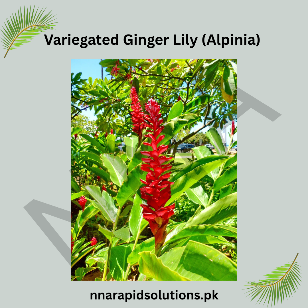 Variegated Ginger Lily, also known as Alpinia zerumbet ‘Variegata’, is a breathtaking tropical plant prized for its gold-and-green striped leaves and lush, exotic look. This plant is perfect for Pakistan’s warm climate, thriving especially well in Karachi, Lahore, Multan, and other warm regions. Even without flowers, its bold foliage creates a dramatic effect in gardens, patios, and indoor spaces. It prefers bright indirect light, regular watering, and fertile, well-draining soil. When mature, it produces beautifully fragrant flowers, making it both a decorative and aromatic choice. Ideal for tropical-themed gardens or as a statement plant in pots